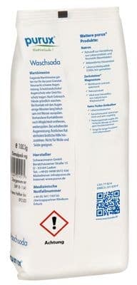 purux Waschsoda (reine Soda, wasserfreie Soda, calcinierte Soda Natriumcarbonat) wird zur Hygienischen Reinigung in Küche, Bad und Haushalt verwendet. Die Reinigungswirkung ist stärker als bei Natron ( Backsoda ). Die Herstellung aus Salz, Gips und Wärme ist ähnlich.